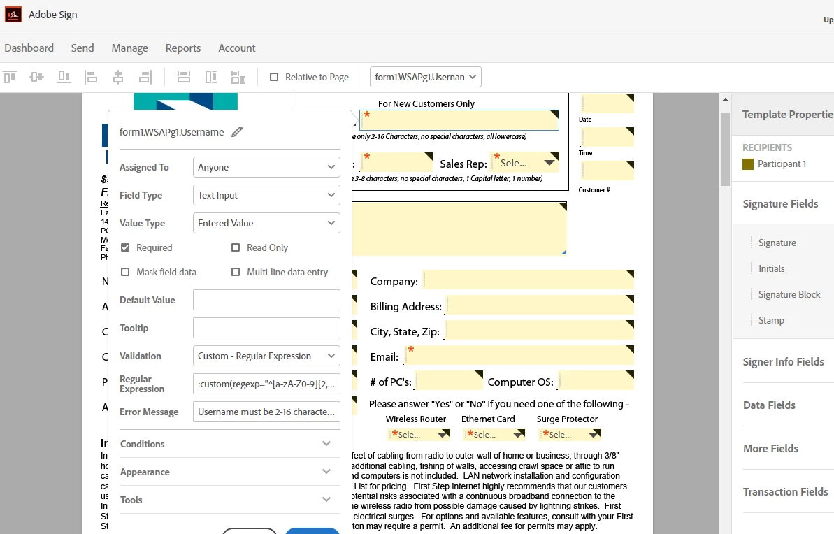 Character amount limits in text fields in Adobe Sign
