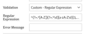 I am trying to limit the amount of characters a person can fill in a text field. I am having issues with the errors still showing up after the right amount of characters are filled in on the forms text field. I am using the Validation - Regular Expression to limit the amount of characters. The person filling out the form can only use 2-16 characters in length which will be a username. Then I have one for a password text field that is giving me errors too. The password has to be 3-8 characters with 1 capital letter and 1 number minimum. Here is my regexp formulas -