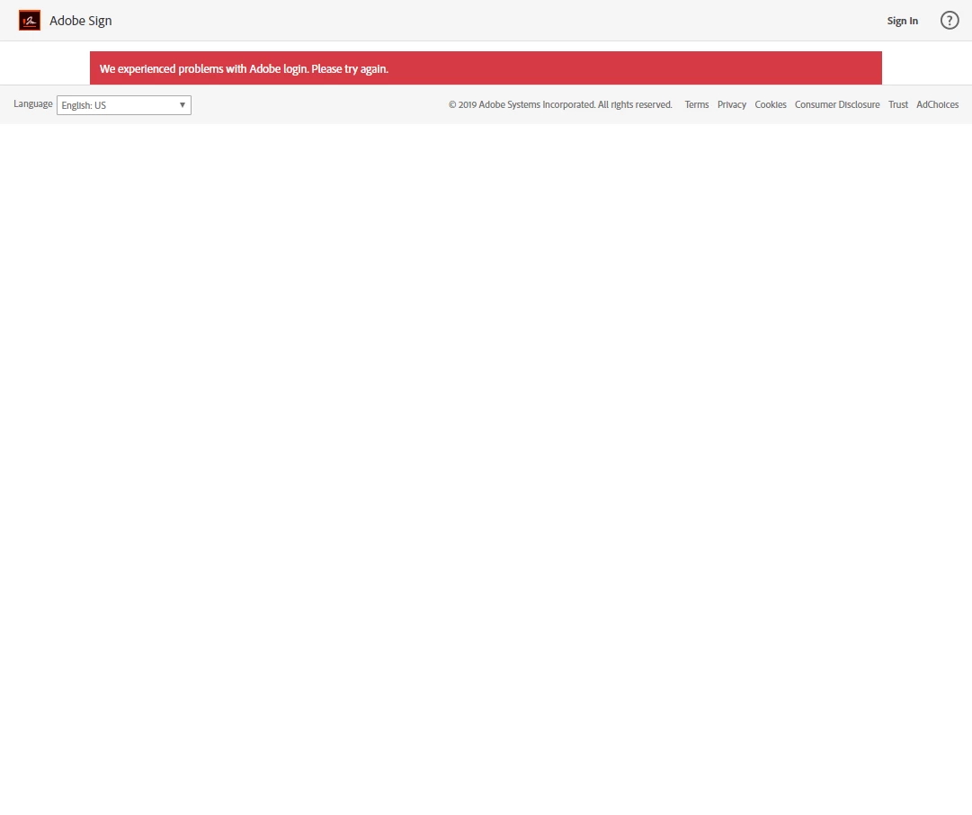 Adobe Sign error - We experienced problems with Adobe login. Please try again.