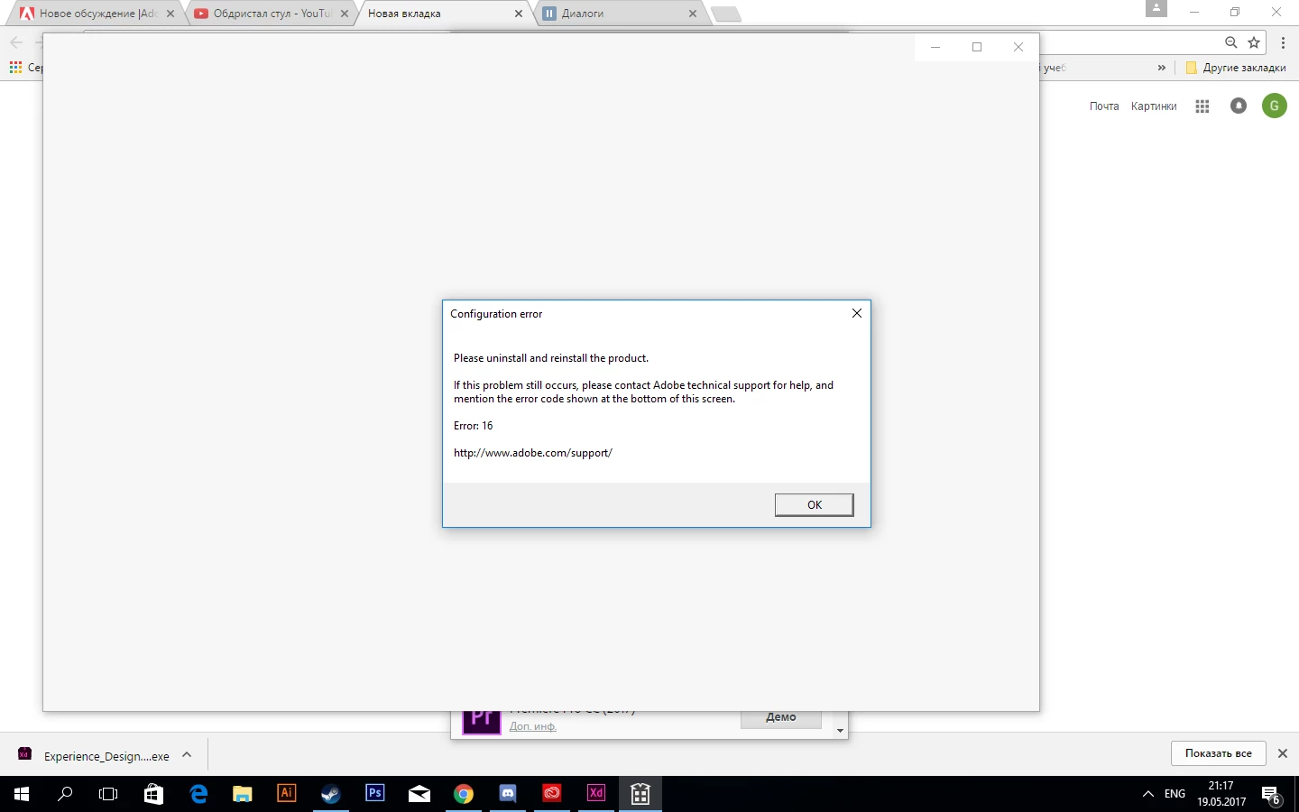 Did this start happening right after you updated XD to the latest version?  If so, make sure you don't have an older version installed under a different user account on the same computer -- see Older versions on another account .