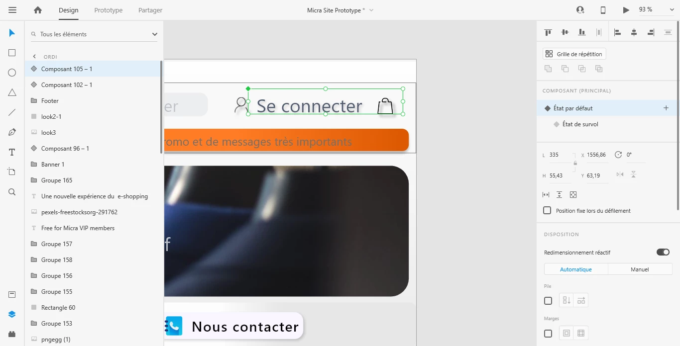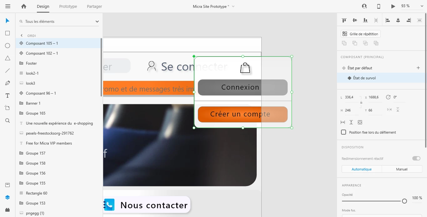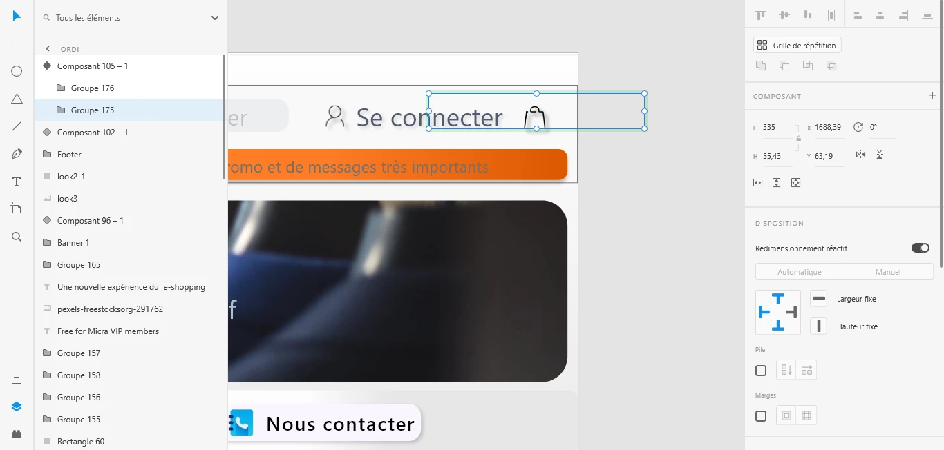 I tried to make the menu and the bag button in the same component; the result is that when I try to reduce the size of the component in its default statistic, it moves and doesn't change its size; even when I only select things in the component (I mean when I don't select directly the component but things in it)