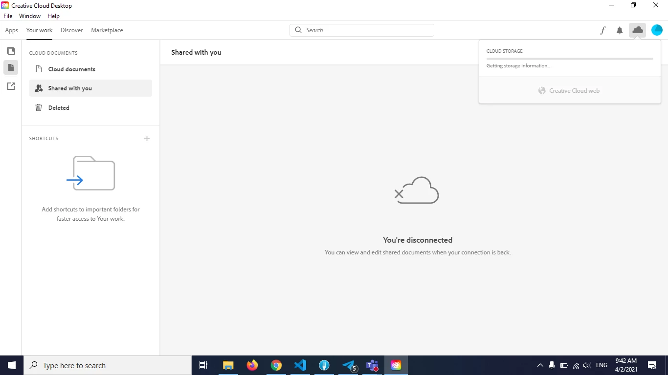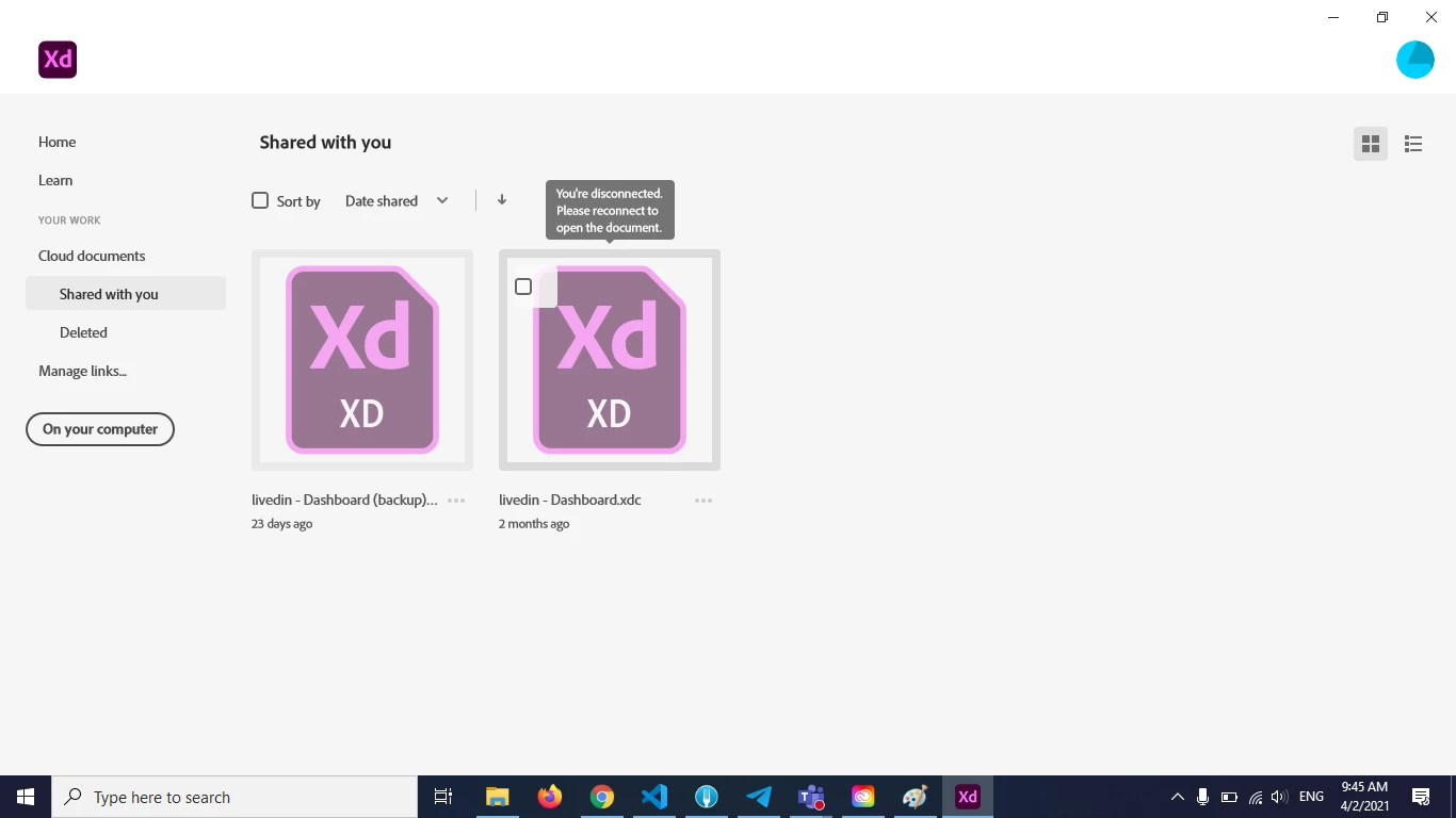 Hi, can anyone help me regarding this issue? i cannot access the cloud shred document in my adobe XD. this issues has been around last year. It says that im disconnected but i have no problem regarding my internet.