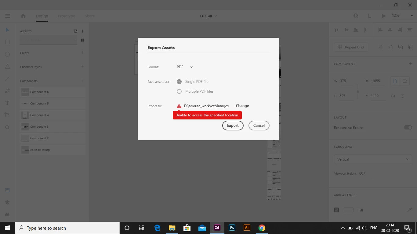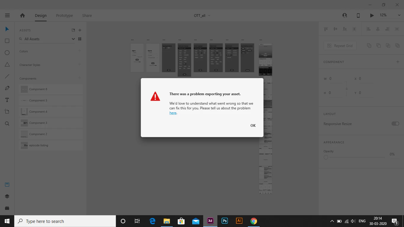 [Import & Export]-Error while exporting in XD." there as an error exporting your asset"