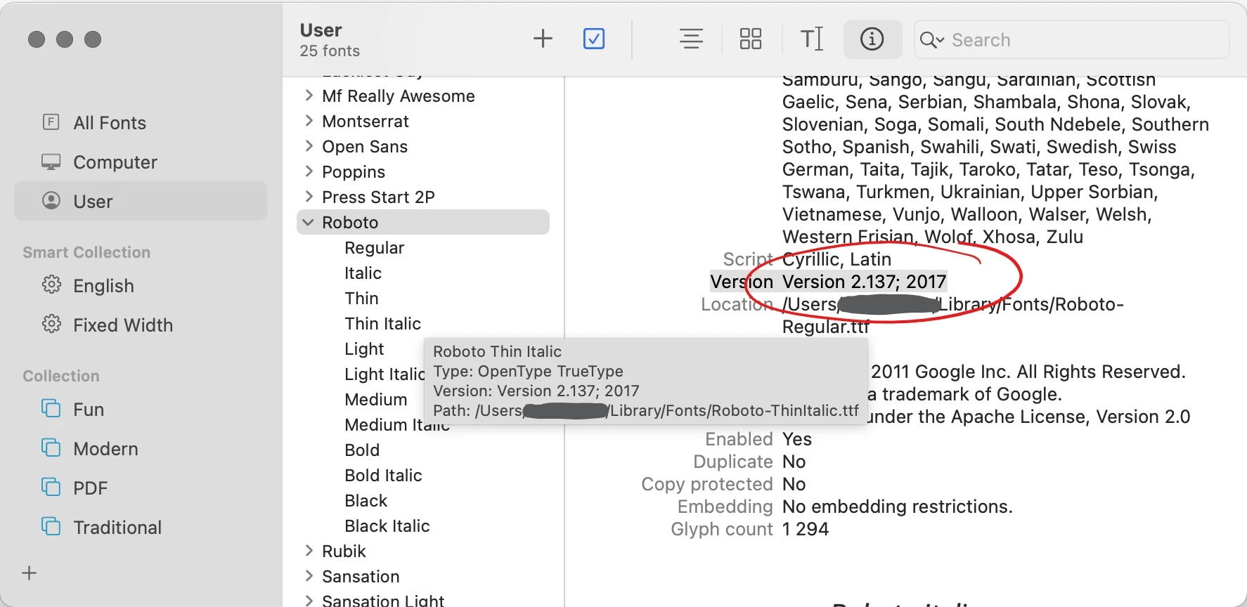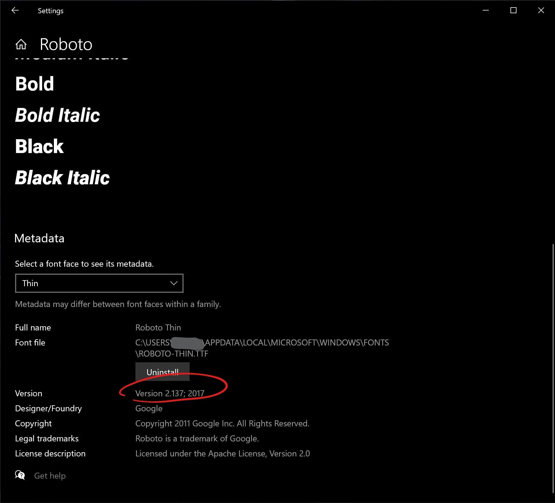 We are using the same Roboto font downloaded from Google: https://fonts.google.com/specimen/Roboto