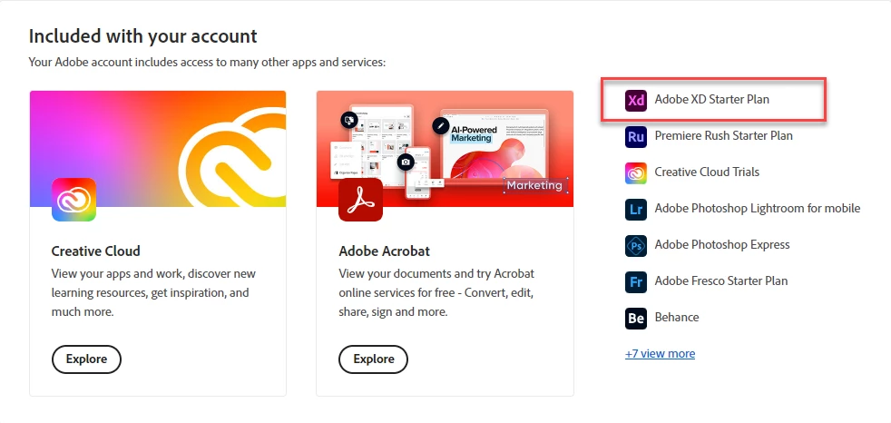 Thank you for reaching out, and sorry to hear you are unable to see XD in your profile. Please share your Adobe ID with me so that we can check your account. As from this ID: codysalyer@live.com, I am seeing that you have Individual, Photography plans and 3 inactive statuses on Creative Cloud, all apps 100GB plan, Adobe XD, and Adobe Stock.