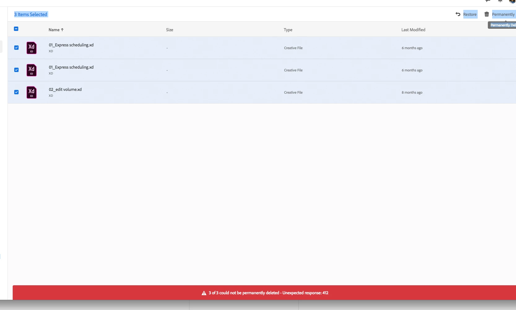 It happens mainly with adobe XD files which gets duplications and cant be deleted. (it seems that they are being deleted, but they aren't).