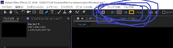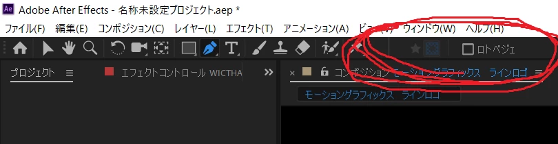 ペンツールを使いたいのですが、チュートリアル動画(図 下)などではペンツールを選択したあと上の「ロトベジェ」と書いてある横に線の太さや色などを変える場所がありますが、自分のAEにその表示がありません。(図 上)