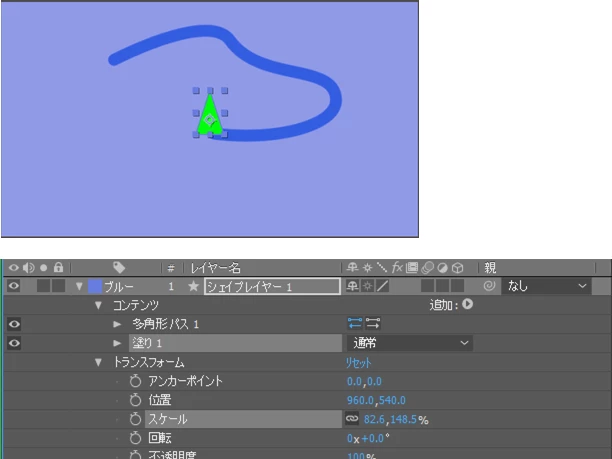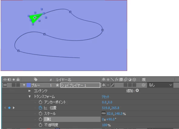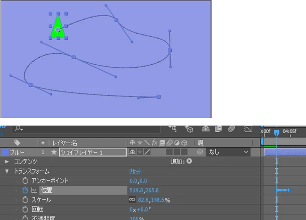 上記の動画を参考に現在くねくねと動く矢印を作成しようとしているのですが、ラインのパスをコピーして矢印の頭図形の「トランスフォーム/位置」にペーストした瞬間に矢印の頭がとんでもないところに急に移動します。