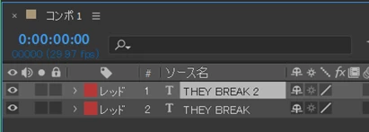 すると、複製テキストレイヤーの「THEY BRE」の文字が見えるようになり、両方のテキストレイヤーで全ての文字が見えるようになります。