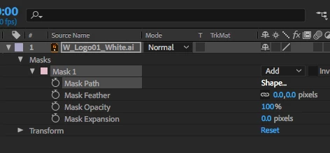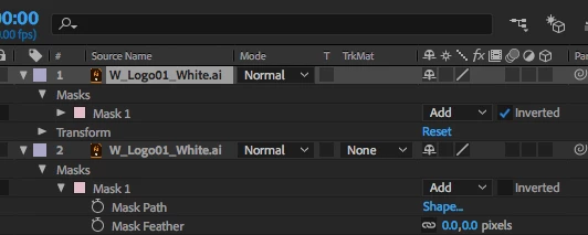 ロゴが割れた後にテキストが現れたりするのであればトラックマットを使いますが、