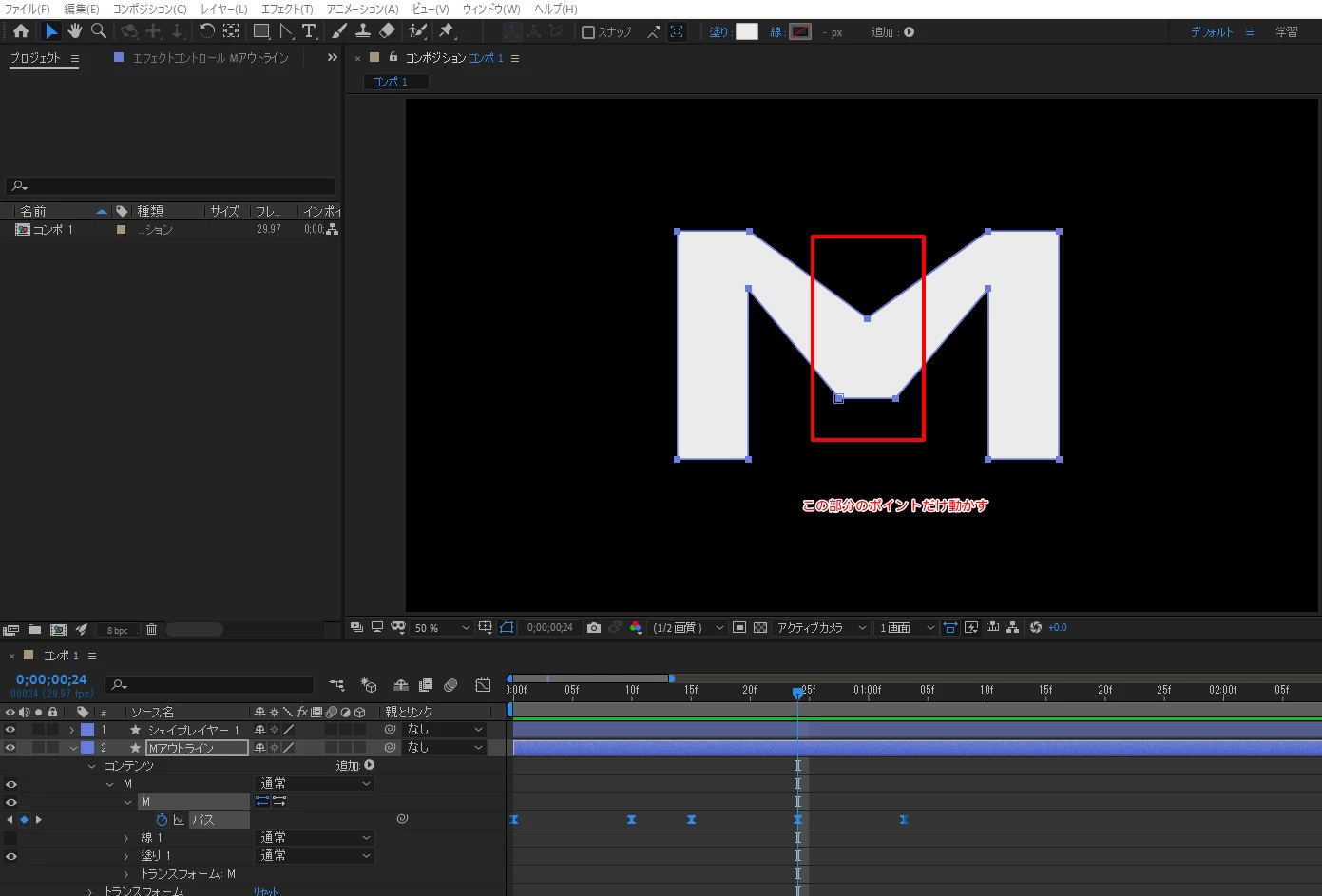 試しにMの両端の棒で1つのレイヤー、