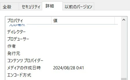 movのプロパティを確認した際「メディアの作成日時」が正しく記載