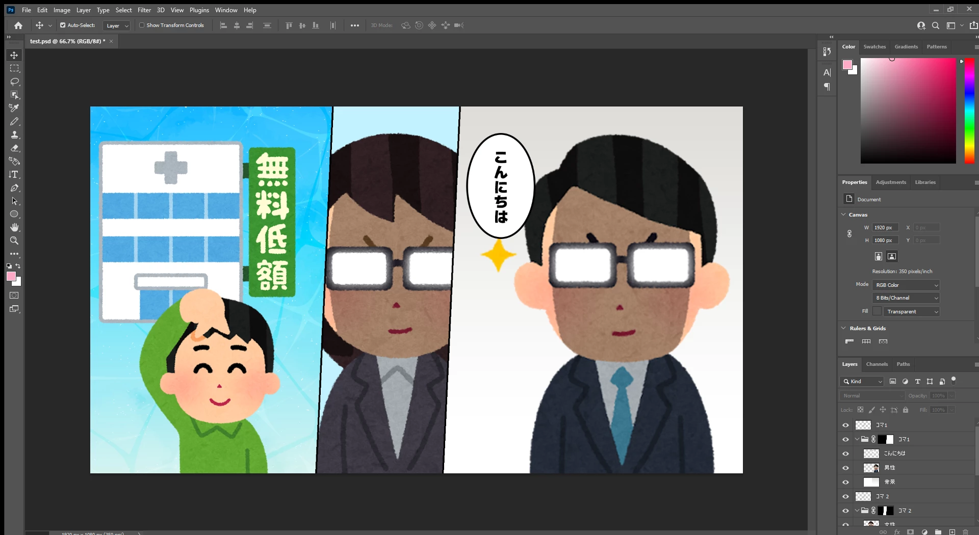 Photoshopでレイヤーマスクを使用し漫画のコマ割りのように表示するようにしていますが、
