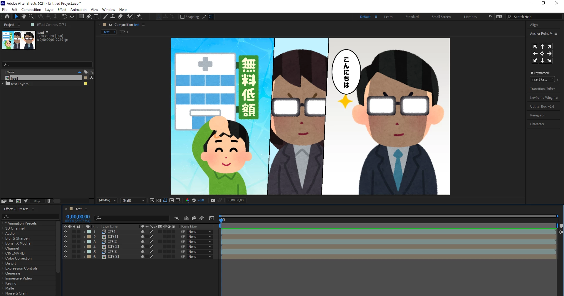 これを、以下のようにコンポジション(レイヤーサイズ)でAfterEffectsにインポートします