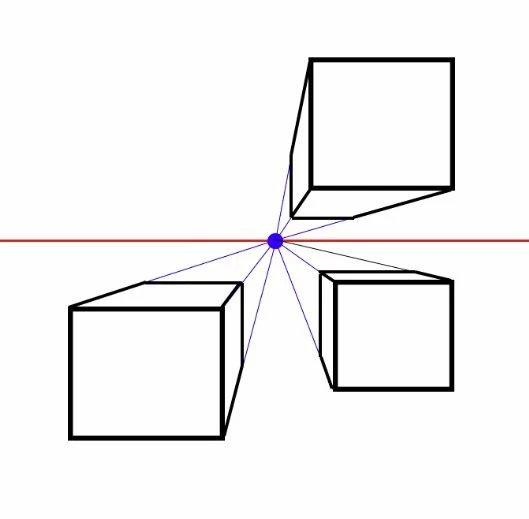 In one point perspective when I rotate something 90 degrees it must vanish in a horizontal line. right? The math says that. It will not vanish if the angle is slanted from your perspective (eye length). So as my 90-degree rotation is not vanishing into the