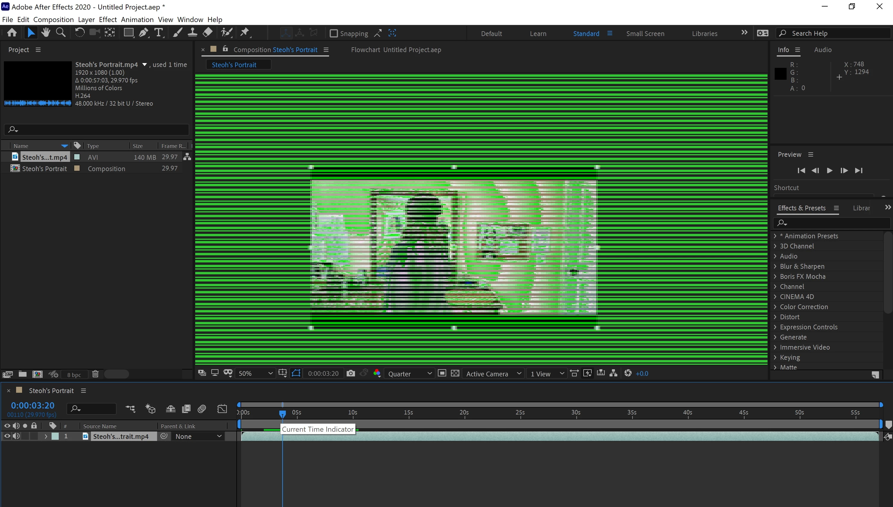 A bunch of horizontal green lines won't go away on my Composition screen when i open up any video