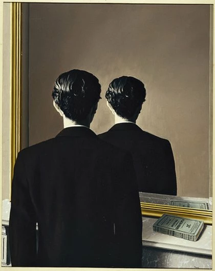 I am very new to after effects so I appologise if I am using the wrong expressions or you will have to explain things in a very dumbed down way but I am trying to re-create this rene magritte painting with video clips. Is there any way I could use the same footage to mask my actors back into the mirror itself?