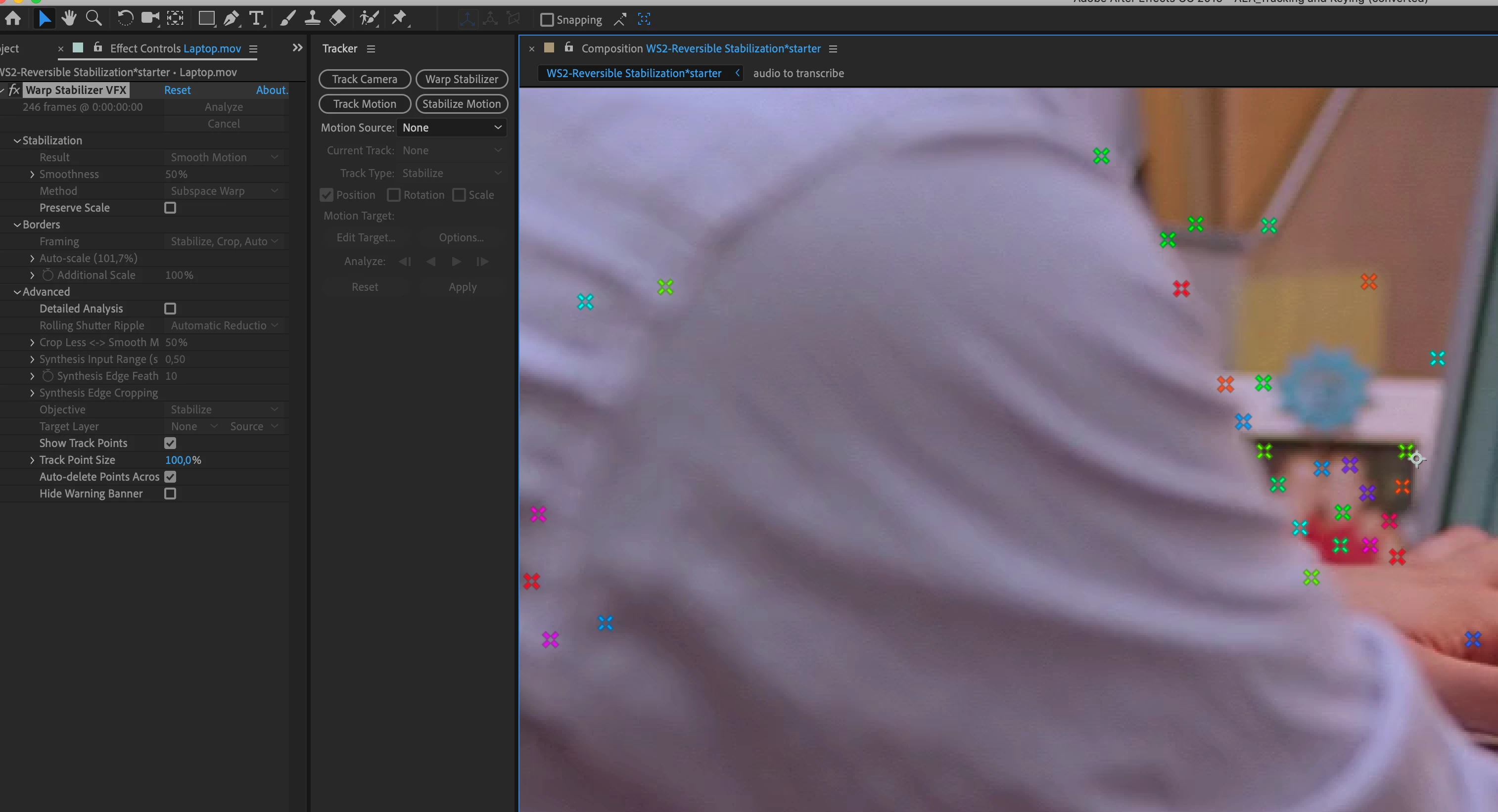 When I work with Warp Stabilizer VFX and want to delete some track piont in a video, the "Show track point" in advansed keep turning off, so I have to start all over again? Why?