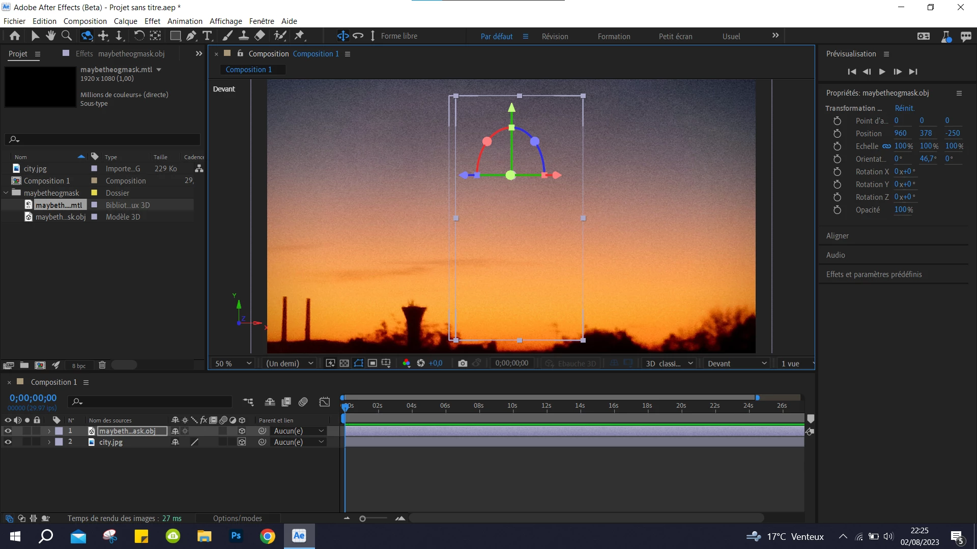 Hello ! I recently made a 3D Object that i wanted to import in AE (beta 24.0, that supports obj and glb files). I imported a glb and an obj file to test which one works, and when i import the 3D object into the scene, i can't see the object, it's selected, but invisible. I imported an image as a background, to see if it was because my object is glass and it needs a light/background to reflect to, but it didn't work I think it's because the 3D object doesn't use the background to reflect, but how can i fix that ?