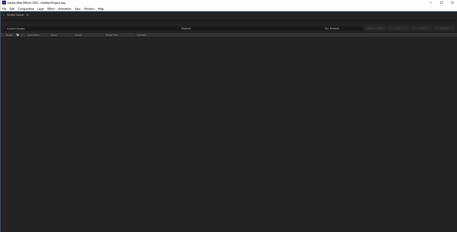AE can only load as a render engine, main screen is all greyed out