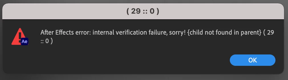 AE error: internal verification failure {child not found in parent}