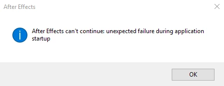 AE Launch Error: Unexpected failure during application startup