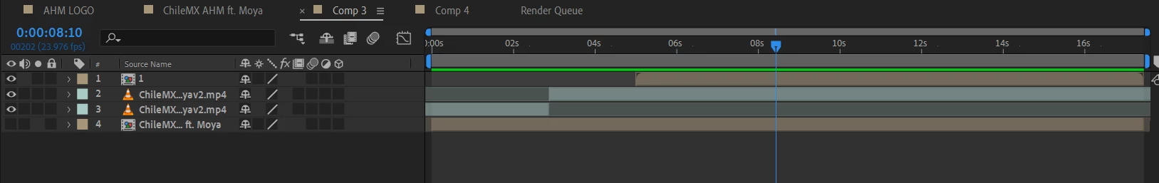 when I render through Adobe Media Encoder, for some reason, the 2nd layer (one of the video files) goes to black around the 10 second mark, the precomp named "1" shows up normally. and the 3rd layer flickers. I'm rendering in H264.