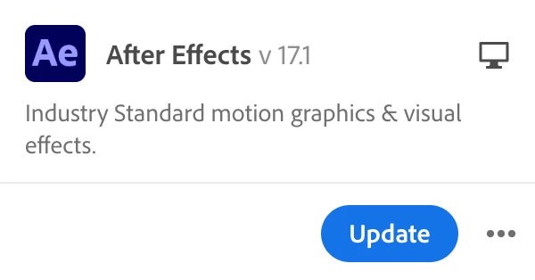 To update After Effects, open the Creative Cloud desktop application and click Update.
