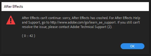 After Effects can't continue: sorry, After Effects has crashed. ( 0 :: 42 )