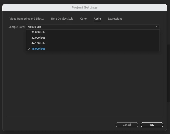 I don't know why my audio highest sample rate is only 48K and I really want to change to 96K for my Hi-Res audio of video.