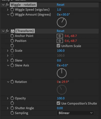 Anchor point problems with 'wiggle rotation' effect