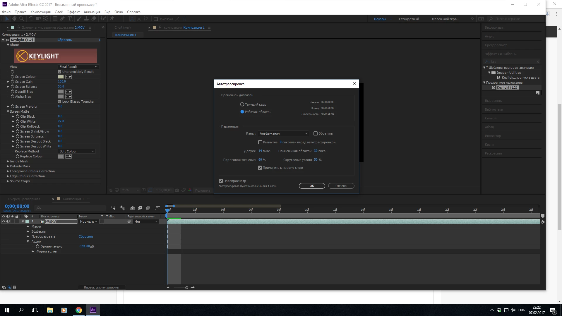I imported my video, used keylight 1.2
