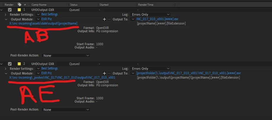 When trying to set up a Both option, Import & Replace Post-Render Action doesn't seem to work. (Please ignore the output to paths here as it's probably related to Issue #1)