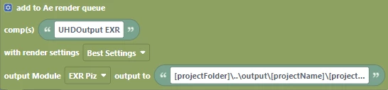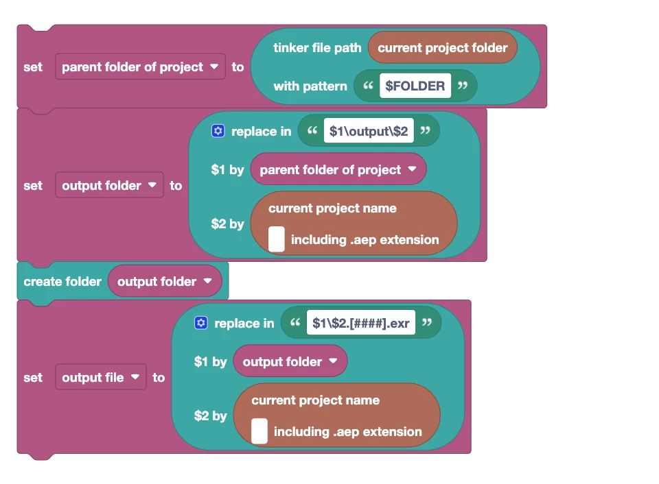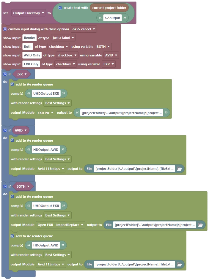top is Automation Blocks, bottom is After Effects after selecting a Output To menu item