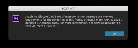 I get this ridiculous error every couple days or so with CC0215.3. Any guesses what triggers it and why it can't find 2K of free RAM?? (This is a Mac Pro (Late 2013) with 64GB of RAM!)
