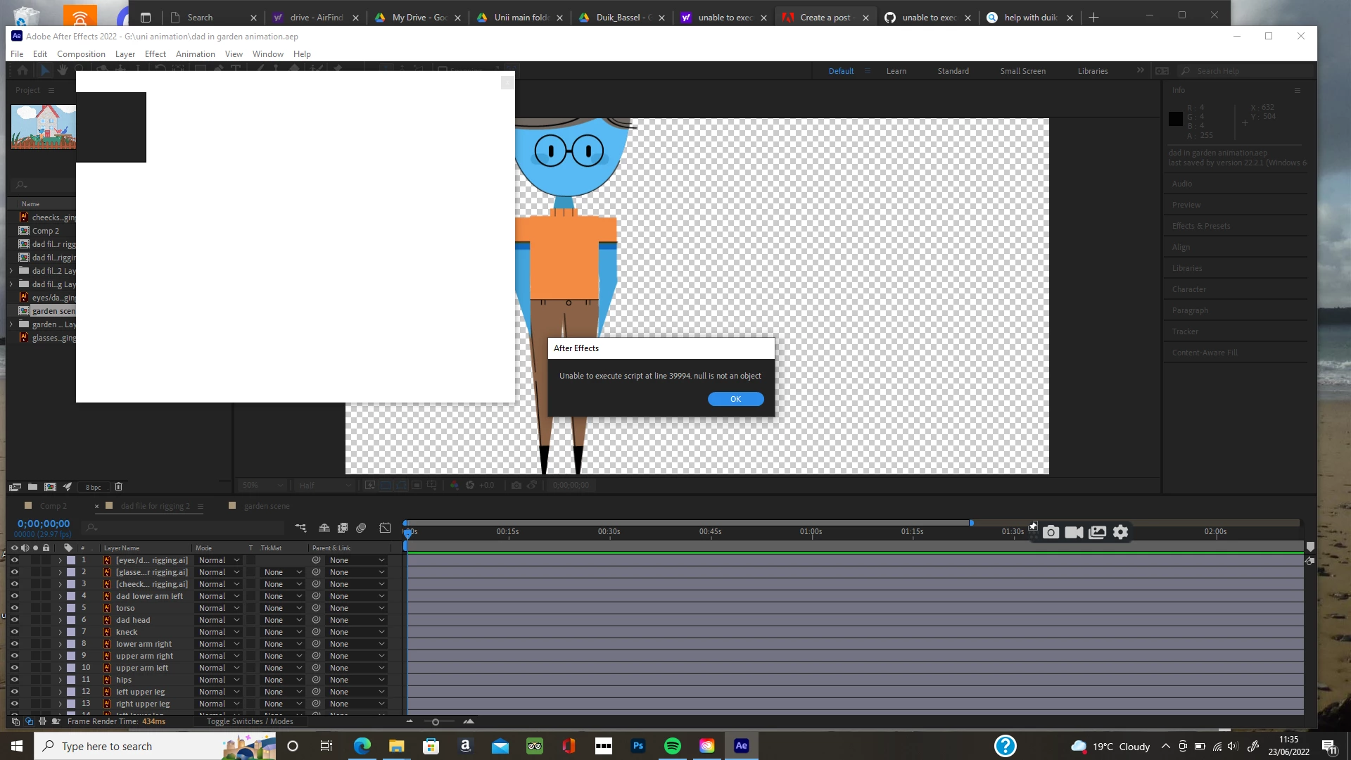 Cant run Duik Bassel 2. error message 'Unable to execute script at line 3994. null is not an objec