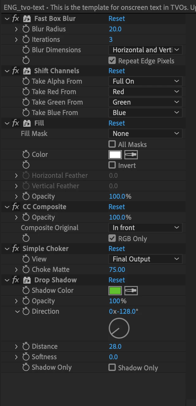 Here are some screenshots showing the effects I have on the text block and what I want it to look like in the end. I am exporting this to MOGRT so other editors at my company can easily change/highlight colors of words.