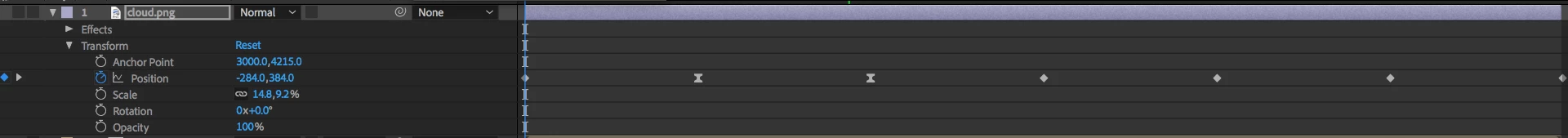 Does your cloud layer have transparency?. What happens if you select the cloud.png in the Project panel, then select the working shape layer in the comp, then hold down the Alt/Option key and drag the colud.png from the project panel to the comp to replace the shape layer?