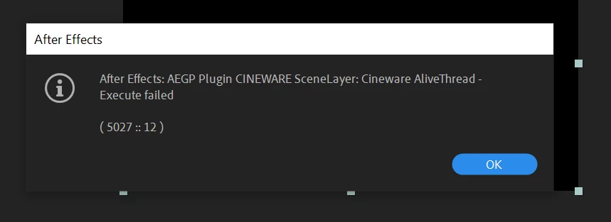 Error: AEGP Plugin CINEWARE SceneLayer: Cineware AliveThread - Execute failed