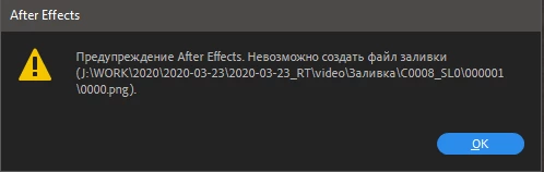 Предупреждение After Effects. Невозможно создать файл заливки (J:\WORK\2020\2020-03-23\2020-03-23_RT\video\Заливка\C0008_SL0\000001\0000.png).