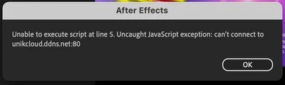 Error Unable to execute script at line 5. Uncaught JavaScript exception: can't connect to unikcloud.