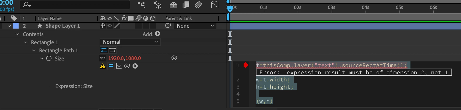 I got the same "expression result must be of dimension 2 not 1" message, Im a noob, but this is surreal.