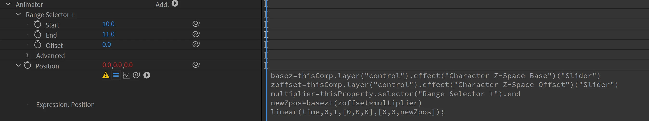 multiplier=thisProperty.selector("Range Selector 1").endBut I realize "thisProperty" points to the Position property because that's where the expression is. Is there varition on "thisProperty" to say "go up to the next property in the hierachy"