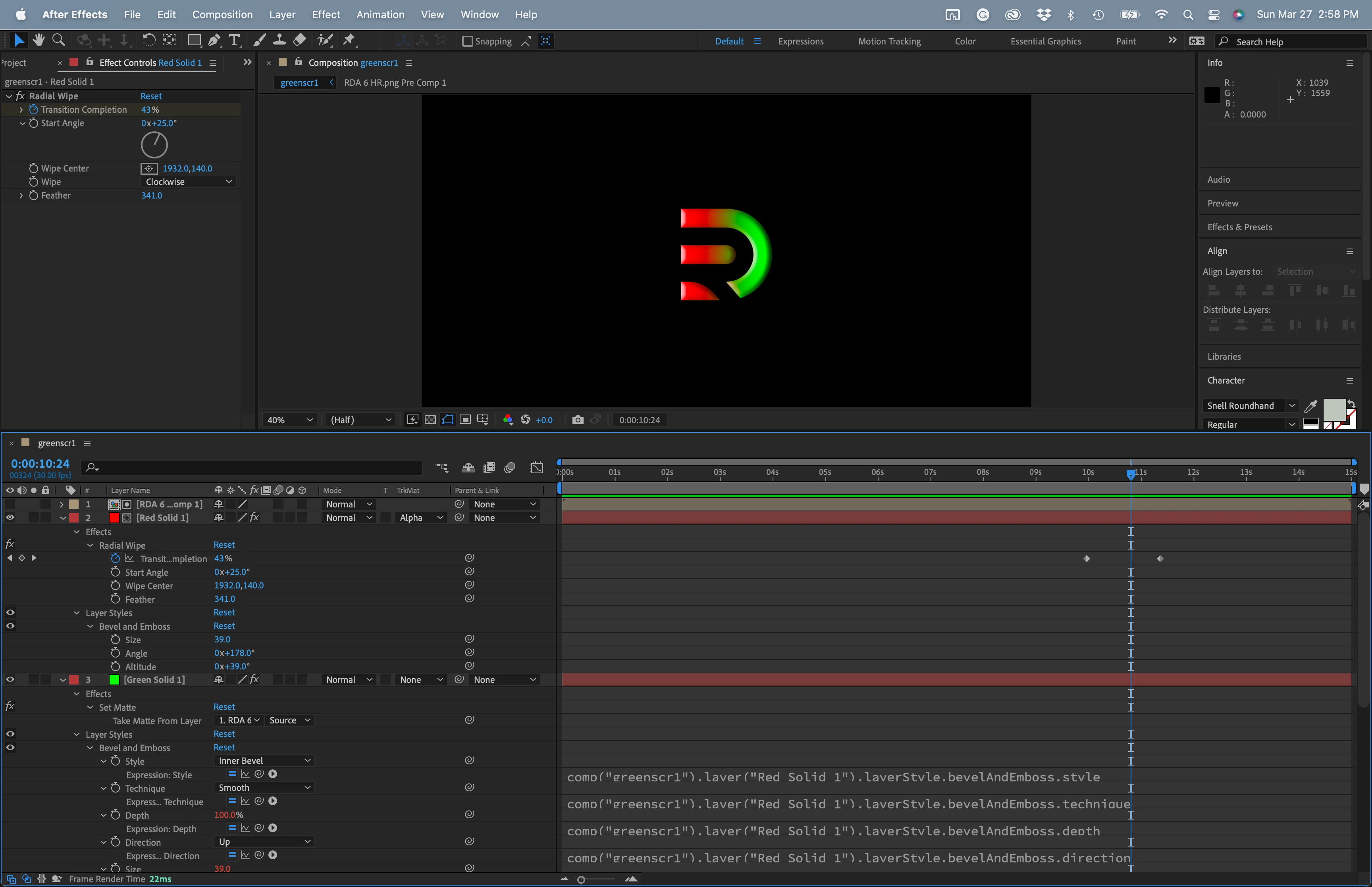 - Set the Alpha Track matte for the Red Solid (now layer 2)