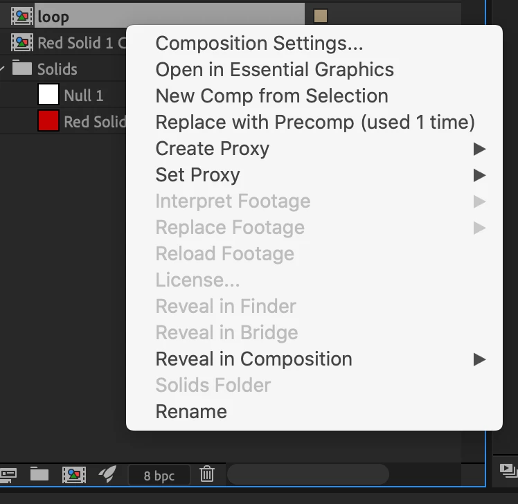 Hello! I just got AE2020 and trying to loop a footage through "interpret footage". I have selected the Pre-Composition and the tab for "interpret footage" is greyed out. Hope anyone could help. Thanks!