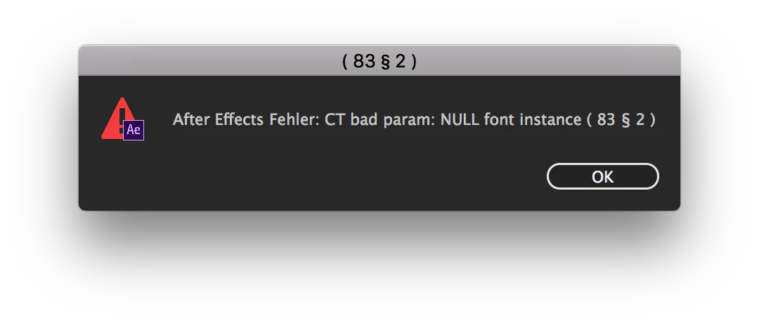 Help! AE Error: CT bad param: NULL font instance (83 § 2)