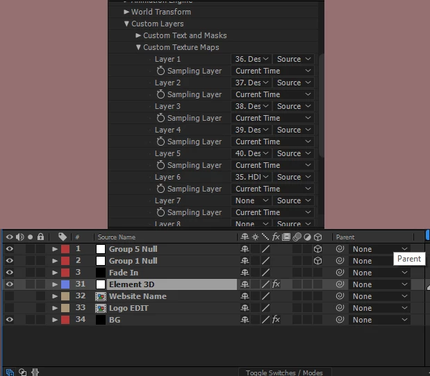 I got a template and I saw something interesting. It is an E3D logo reveal. Most of the layers were somehow hidden from the layers panel. When I went to