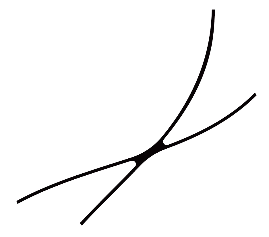 I need to animate two lines. They should be separate but moving freely. At some point, they should touch each other like in the picture below.