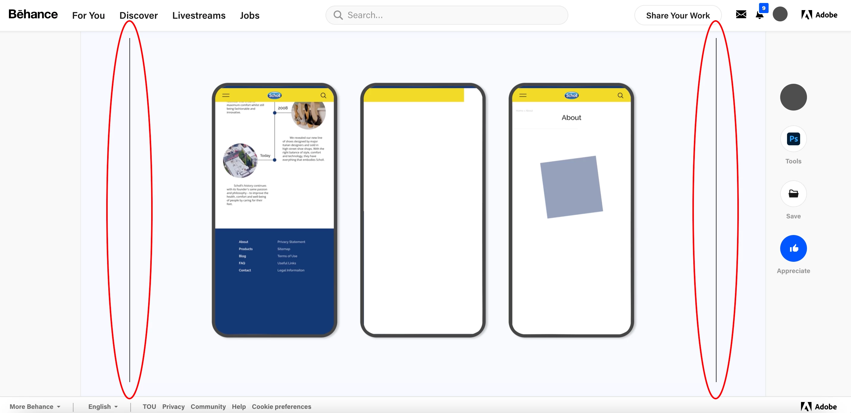 So I decided to put it as a normal H.264 in Behance. However, as you can see in the photo that I attached, there are black lines on the side. I adjusted the size few times and the bottom thin line has disappeared but the ones on the sides do not seem to disappear. The pixel size of the uploaded image is 2720 x 1555 px. If I encode it as GIF with the same size black lines are not appearing. I also tried encoding from Vimeo but somehow whenever I encode the video becomes too small with bad quality.