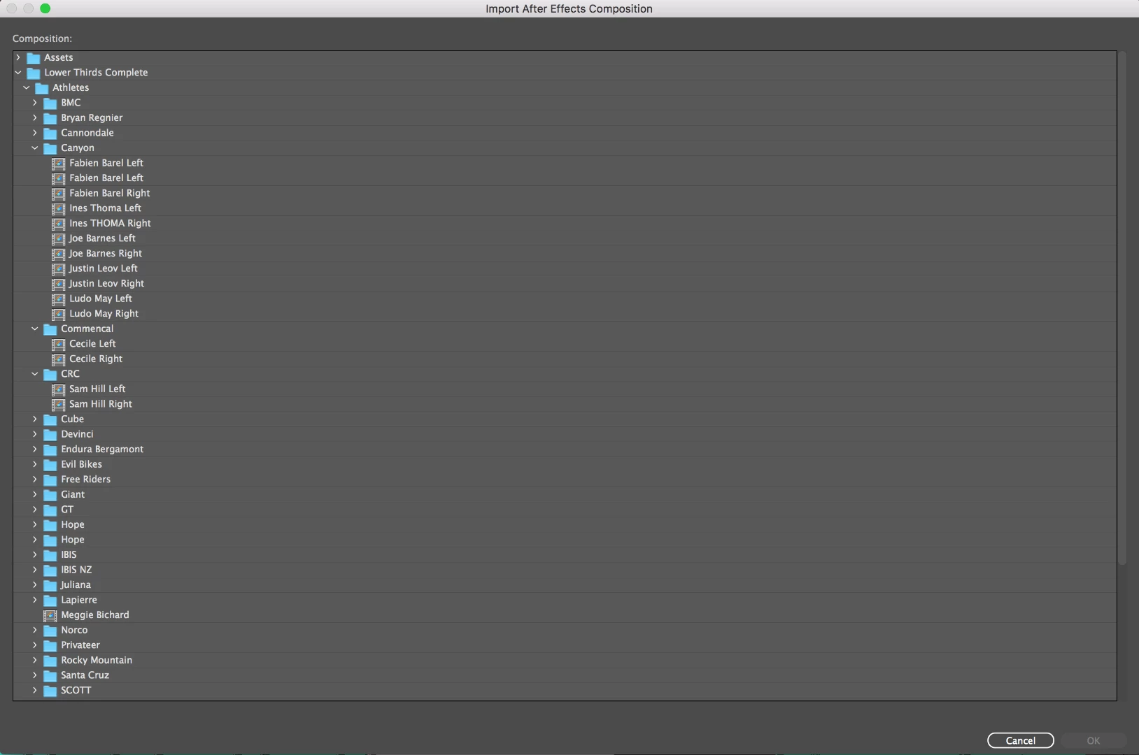It looks like a bunch of lower 1/3's may have the same design. No need to import a separate comp for each of these as the names can quickly be changed inside Premiere Pro on the fly. I recently did a 60 minute show with about 25 different interviews and I only imported only 1 AE comp and just edited the names directly in the timeline.